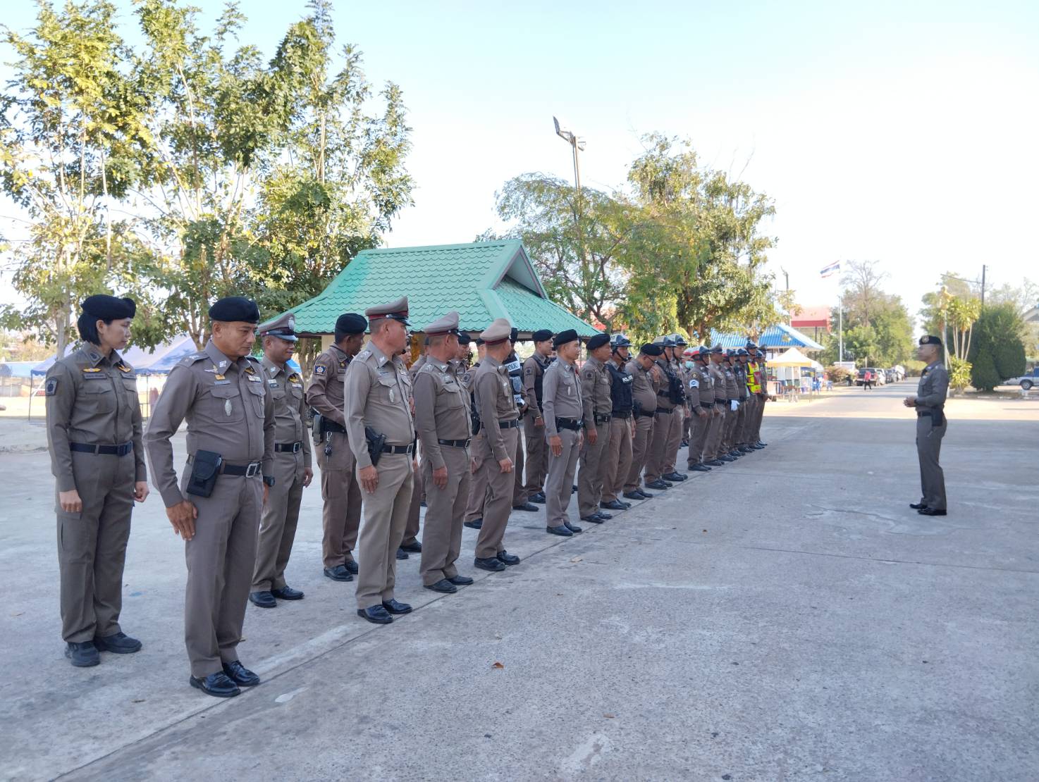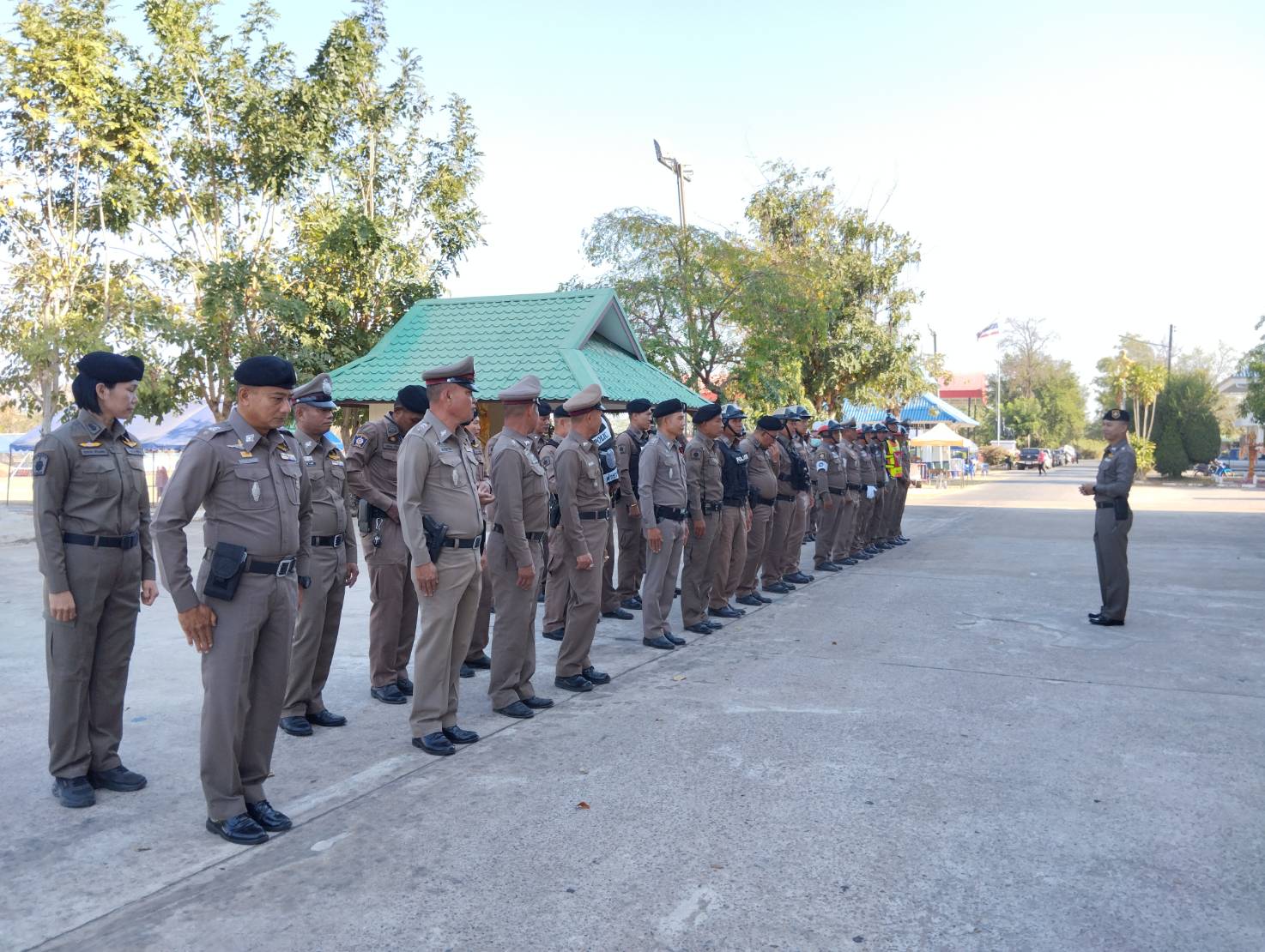 พ.ต.ท.มีเกียรติ ประพฤติดี สวป.ฯ เรียกแถว เจ้าหน้าที่งานป้องกันปราบปราม ชี้แจง ยุทธวิธีตำรวจในการเข้าระงับ เหตุ เพื่อเพิ่มประสิทธิภาพและความปลอดภัยในการปฏิบัติ หน้าที่