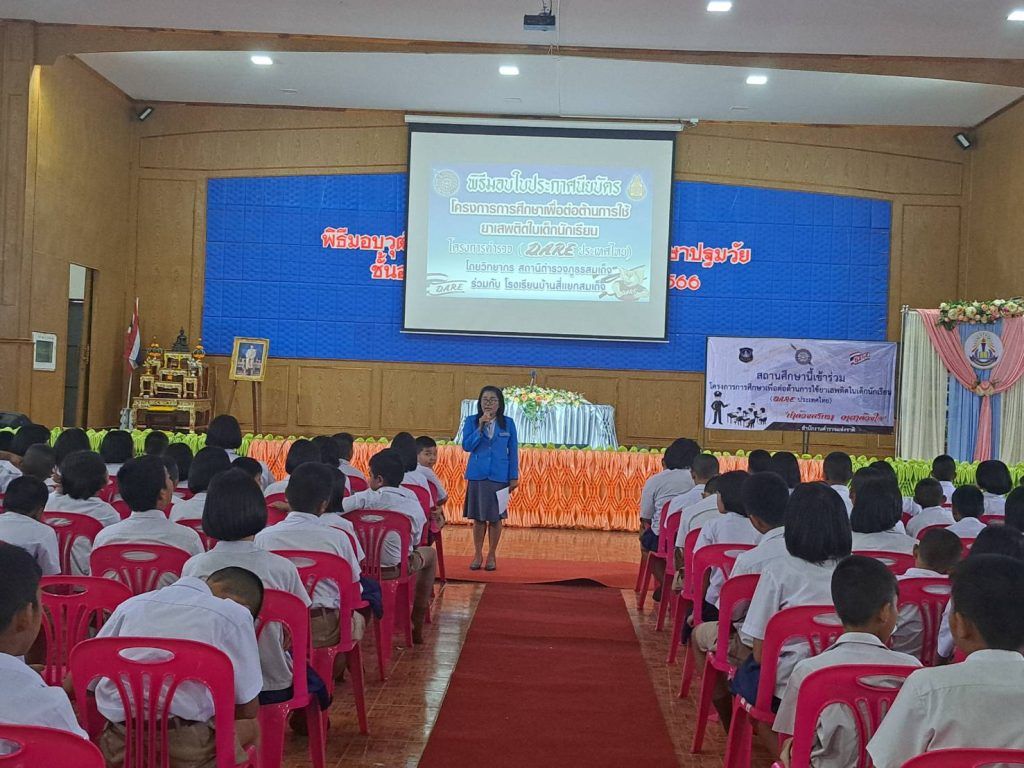 โดยมีนาย กรชกร ชวติ ผู้อำนวยการโรงเรียนบ้านสี่แยกสมเด็จ/รองผู้อำนวยการ/ คณะครู และนักเรียนเข้าร่วมในพิธีปิดโครงการการศึกษาเพื่อต่อต้านยาเสพติดในเด็กนักเรียน (โครงการ D.A.R.E.) ของภาคเรียนที่ 1/2566 และภาคเรียนที่ 2/256 มีนักเรียนชั้น ป.5/1,5/2,5/3,5/4,5/5,5/6 รวม 6 ห้องเรียน โดยได้รับความร่วมจากคณะครูชั้น ป.5 และชั้น ป.6 เป็นอย่างดี