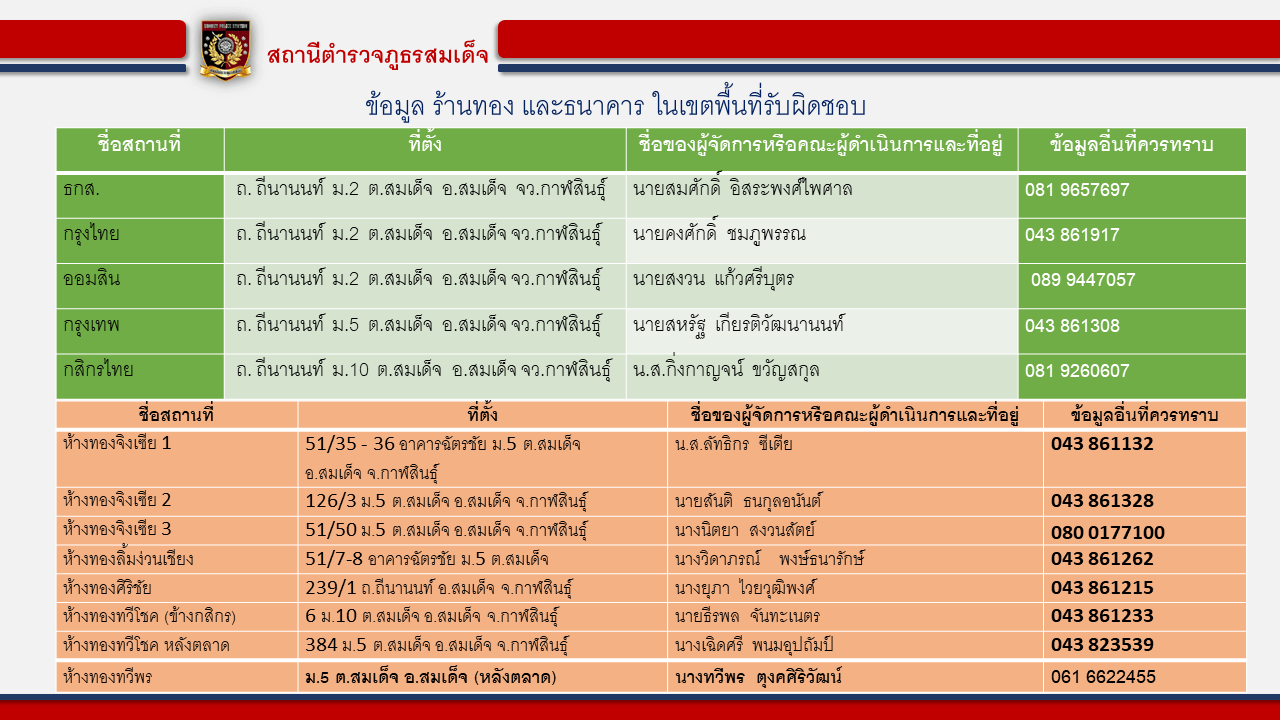 รอง ผกก.สส.สภ.สมเด็จ โทร.0811848504