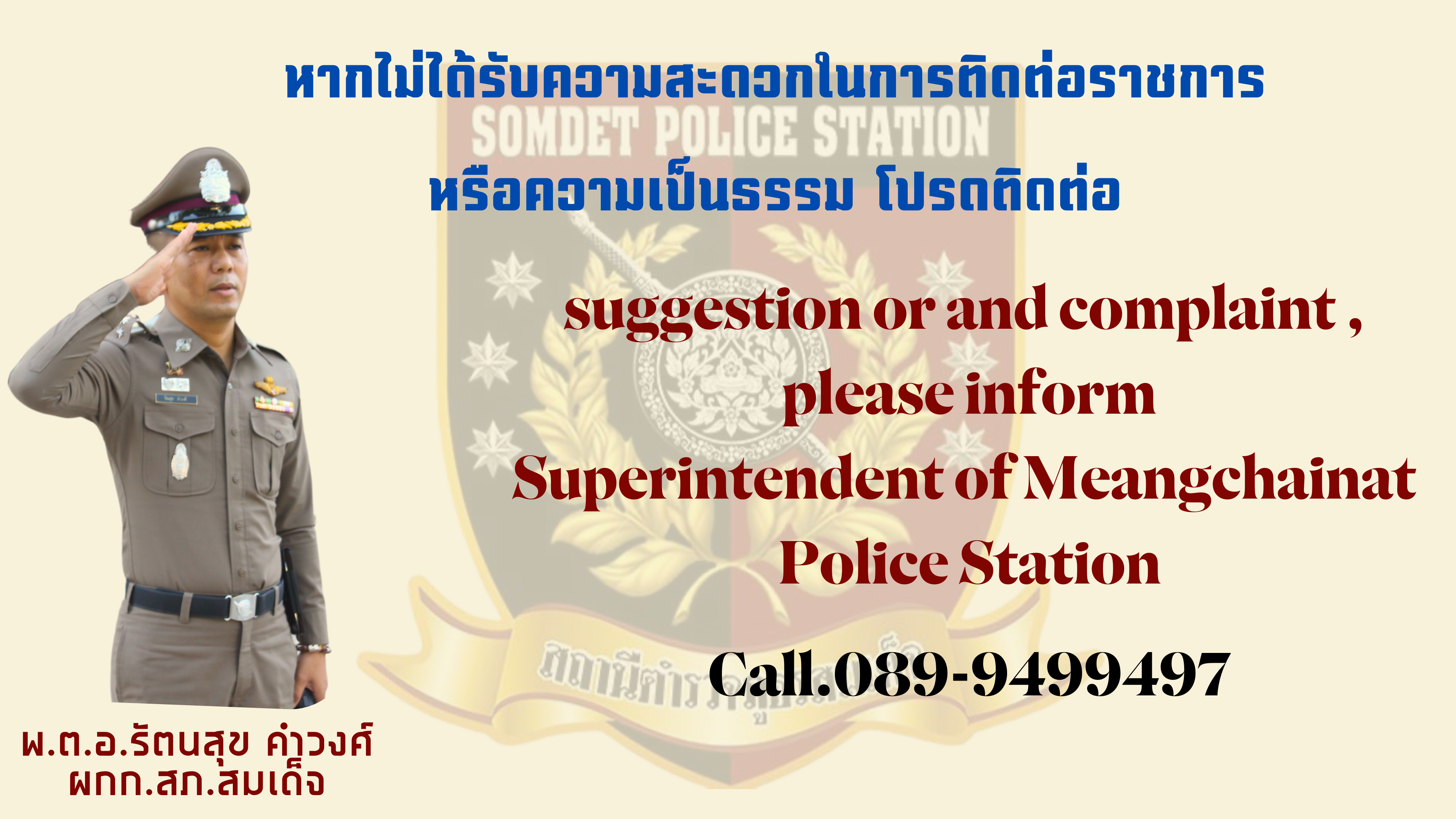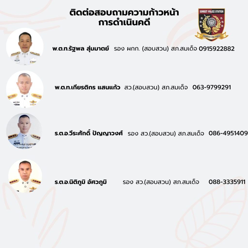 สภ.สมเด็จ ได้เผยแพร่ผลการปฏิบัติงานผ่านสื่อสังคมออนไลน์ Face book / website สภ.สมเด็จ อย่างต่อเนื่อง และสามารถติดต่อสื่อสารกับเจ้าหน้าที่ตำรวจได้ตลอด 24 ชม ผ่านช่องทางด้านล่าง